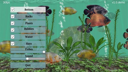 One of the best free 3D aquarium for Windows desktop includes different types of oscar cichlid fish - tiger oscar fish, albino oscar fish, lemon oscar fish, red oscar fish and black oscar fish free moving among amazing 4k fish tank decorations. The cool underwater backgrounds includes river's plants, light rays and animated small air bubbles rising up to surface of virtual aquarium. Both big fish size, oscar fish tank size and animated aquarium background are in original 3D quality (4k or full HD 1920 x 1080 resolution). For all who wants to download one of the best free aquarium screensaver for relaxation or customize their Windows 10 desktop by using unique disign ideas of aquarium live wallpapes, computer aquarium thems or colorful aquarium screensavers, without need to have a real aquarium pets and buy live oscar fish online or download a big youtube swimming fish video in 4k. Bring relaxing atmosphere of one of the best 4k aquarium to your office or home. The colorful fish wallpaper, where living tropical fish move across the computer screen, is a great 3d fish game and engages your cat in energetic game for cat, satisfies your kitten's needs for activity and gives him the maximum pleasure from a living aquarium! You are trying the full version, but sometimes an ad screen will be displayed, just click on the Continue button to test this virtual aquarium software for free.