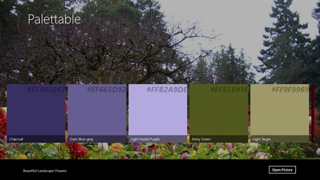 You can choose from Bing images, your SkyDrive, and more. Share the colors with your friends or use them in your designs.