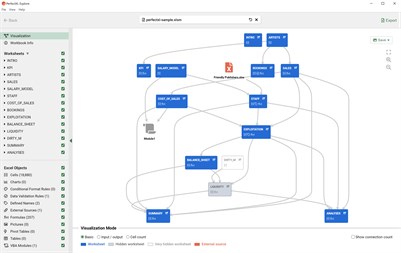 Our tool for exploring Excel files is ground breaking. This standalone application shows you Excel in a whole different light with a smart combination of information that can't be found in Excel, and clear visual representations. With seamless Excel integration it allows you to understand and navigate Excel models effortlessly.