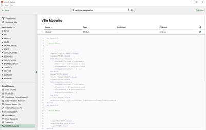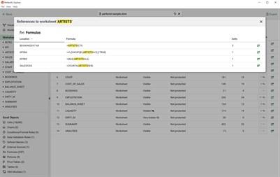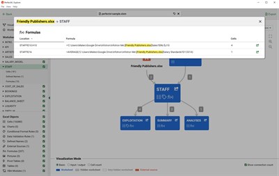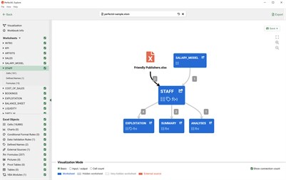 The tool can be used to gain a better understanding of previously unknown Excel files, to improve the structure of your own files, and to find unnecessary parts of the file that can be removed to improve efficiency. We encourage you to finally be able to understand Excel, by zooming out and seeing the bigger picture. The interface is straight forwards and visually stunning, try it now!