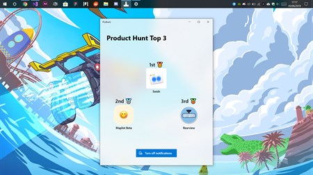With Podium, you receive notifications every 2 hours, showcasing the top 3 products on Product Hunt. This allows you to see how the feed changes over time without having to open the app but if you do get curious, you can click on a notification and get taken straight to its product's post on Product Hunt!
