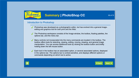 Professor Teaches Photoshop Creative Cloud is a fast and easy way to learn Adobe Photoshop Creative Cloud, the premier image design tool used by artists, animators, design agencies, and web developers and designers. Professor Teaches Photoshop CC provides complete tutorials, guides, and interactive exercises to help unleash your creative potential.