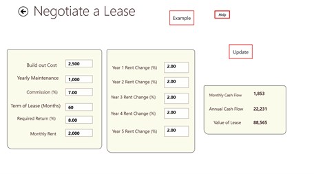 You can select from up to 200 different properties to study. You can save and recall each property and study different scenarios for each. . And the app also comes with a full blown financial calculator and amortization function.