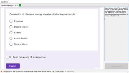 QuizAide is an anti-cheating software designed to provide security measures for the instructors to maintain online exams and quizzes as fair as possible in order to defend the rights of the examinees and support moral aspects of education and grading.