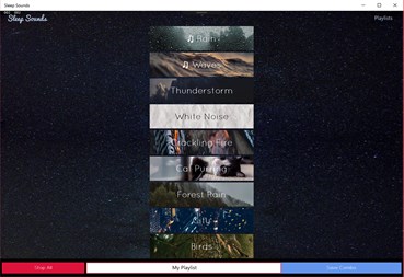 Sleep Sounds is designed to aid sleep and relaxation, providing the user with ambient sounds such as rain, birds, thunder and many more. Play one sound, many sounds, save your favorite combination of sounds - the choice is yours.