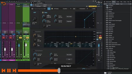Joshua starts the course with an overview of Studio One’s mixer where he explains how to do a rough mix of your project. Next, you learn tips to handle bigger projects using grouping, busses and VCA channels. You discover how to polish up your productions using the built-in plugins such as the Pro EQ, Compressor, Open AIR (a very cool reverb plugin!), and Groove Delay. Once you understand the basics compression, EQ and other effects, Joshua explores the extremely useful Studio One’s Fat channel XT and demonstrates it on bass, drums, guitars, keys and vocals. Continuing with the course, you learn how to tune vocals with the included Melodyne Essential, how to automate your project, and how to fine-tune your mix before the final export!