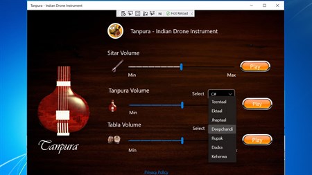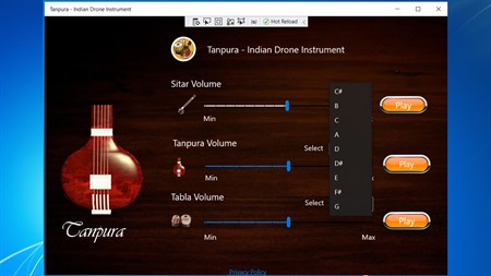 The Tanpura Player Support Different Scales: The app supports different Tanpura scales ranging from "A", "B", "C", "C#", "D", "D#", "E", "F", "F#".