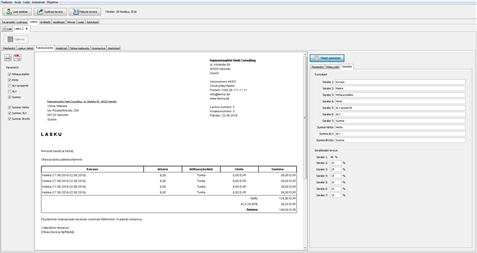 Ohjelman avulla voi luoda omia asiakirjoja. Asiakirjat voi mallintaa täysin käyttäjän haluamalla tavalla, tai siinä voidaan käyttää myös valmiita malleja, jotka sisältyvät ohjelmaan. Ohjelmalla voidaan luoda helposti laskuja sivuotsikolla, logolla ja muilla käyttäjän haluamilla asetuksilla. Laskua luodessaan käyttäjän tulee valita, millä hinnalla hän haluaa vuokrata tavaran. Vuokrattavien kohteiden lisäksi käyttäjä voi lisätä laskuihin lisäkohteita. Laskut voivat sisältää muutaman eri ALV-prosentin. Ohjelmassa on myös sen käyttöä helpottava avustajatoiminto, joka auttaa luomaan laskun ulkoasun ja määrittelemään ALV:n vakioarvona.