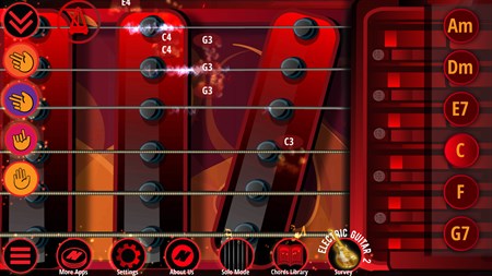 Electric Guitar is similar to the real guitar and it is one of the most realistic guitar simulator apps featuring an awesome sound quality. All the notes have been recorded from the live electric guitar. You can learn how to play the guitar with this app.