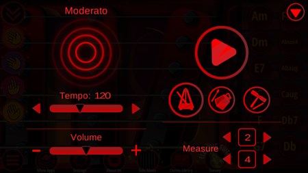 Application contains metronome: ♫ Tempo tuning from 1 to 240 BPM (Beats Per Minute) ♫ Tap tempo ♫ Adjustable tempo signature for simple, compound and complex meters ♫ Beat subdivision as quarter, eighth, triplet, sixteenth, quintuplet and sextuplet notes ♫ Displays Italian tempo markings – handy if you’re not sure how fast Vivace should be ♫ Counter bar ♫ 3 sound packs ♫ All popular time signatures ♫ Accelerando slider for gradual speeding up/slowing down ♫ Adjustable volume