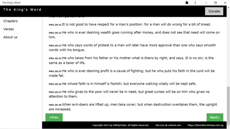 The Holy Bible in multiple versions and languages. It makes it easy to share bible verses across networks, apps, devices etc. It's in over 7 languages and more are being added. It features many versions even in some languages. All of these and more at less than 6MB