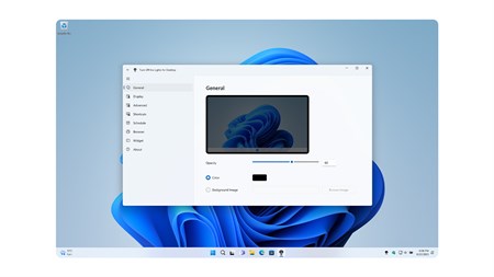 Key Features: ???? Eye Care: Safeguard your eyes from the harsh glare of your screen with a single click on the lamp button. Dim your desktop effortlessly and reduce eye strain. ???? Customization: Tailor your dark environment with a quick settings menu. Adjust the color and opacity of the dark layer with just a two-finger click. ???? Focus Mode: Bring the active application to the forefront of the dark, transparent background, helping you stay productive and immersed in your tasks. ???? Windows 11 Optimized: Designed and engineered exclusively for Windows 11, this app is perfect for working professionals, journalists, educators, students, and anyone seeking a more comfortable screen experience.