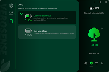 Sovellus tarjoaa käyttäjille neljä suorituskykytilaa: Suorituskyky, Tasapainoinen, Eco ja Eco+. VeroSense on paitsi ympäristöystävällinen myös käyttäjäystävällinen, ja siinä on helppokäyttöinen käyttöliittymä ja hyödyllisiä tietoja, jotka näyttävät, että teet osuutesi planeettamme hyväksi.