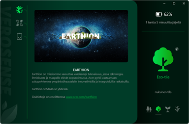 VeroSense on Acerin sisäinen ohjelmisto ympäristöä ajattelevien käyttäjien tavoitteiden edistämiseksi, kuten energiansäästö akkukeston pidentämiseksi.