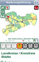 Die APP wendet sich an Waldbesucher, Waldeigentümer, Gemeinden, Feuerwehr, Medienvertreter aber auch an Forstbetriebe, Waldarbeiter, forstliche Dienstleister sowie an Forst-, Brandschutz-, Rettungsdienst- und Katastrophenschutzbehörden und informiert über - die aktuelle amtliche Waldbrandgefahrenstufe des DWD am Tag und am Standort sowie in den sächsischen Waldbrandvorhersage-Regionen, - die Gefahrenstufenprognosen für die Folgetage, - präventive und besondere Verhaltensregeln bei Waldbrandgefahr sowie bei hoher und sehr hoher Waldbrandgefahr (Stufe 4 und 5), - Anleitungen zum Verhalten im Brandfall und zur Meldung eines Waldbrandes sowie über - die Standortkoordinaten und die nächstgelegenen Rettungspunkte (derzeit Staatswald des Freistaates Sachsen, des LK Görlitz und des Stadtwaldes Leipzig) in Sachsen.