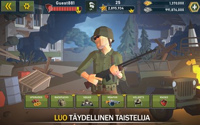 Nimeä parhaat online-ammuntapelit. Nämä hienot pelit eivät voi kilpailla meidän toisen maailmansodan huipputoimintamme kanssa. Liity War Opsiin ilmaiseksi! Sota on täällä - ota aseesi ja valmistaudu toimintaan! Herää, sotilas! Tai olet kuollut, kun päivä koittaa. Etkö kuule velvollisuuden kutsua? Valitse armeijan sotilas tai armeijan tarkka-ampuja, ja hyppää taistelukentälle. Liity taistelupeleihin heti! War Ops on taistelu-pvp-asepeli, jossa on loputtomasti toimintaa! KAIKKI, MITÄ RAKASTAT TOIMINTAPELEISSÄ Valitse sotilaallesi ase ja aloita taistelu parhaassa hupipelissä, ilmaiseksi: joko pvp verkossa tai pvp tiiminä. VALITSE ASEESI Pelaa avataksesi viileitä aseita tullaksesi lopulliseksi asevalvojaksi. Kerää kaiken tyyppisiä aseita: parhaat ampujakiväärit, haulikot tai pistoolit vapauttaaksesi voimasi online-sotapeleissä! Ammu aseita ja tee enemmän vahinkoa sotalle. Kaikki mitä rakastamme sotapelejä. PARANNA SOTILASTASI War Opsissa avaat ja päivität kuuluisia sotapelien hahmoja. Muuta soturisi skiniä, paranna terveyttäsi, vaurioita, nopeutta ja muita ominaisuuksia. OLE PARAS TOISEN MAAILMANSODAN TAISTELUKENTÄLLÄ Käytä taitoa ja strategiaa taisteluissa toimintapelien kierroksilla. Kilpaile ja taistele miljoonia ystäviä ja vihollisia vastaan tässä jännittävässä, ilmaisen moninpelissä. FEATURES: IMPROVE YOUR SOLDIER DURING THE BATTLE! Try all equipment types for every occasion. Deal max damage to the enemy or to make your armor stronger? You can take everything you need with you or find bonuses directly on the map. PLAY MULTIPLAYER GAMES WITHOUT LIMITS! Feel the power of PvP battles online with players from all over the world. Challenge your skills in team battles on the WW2. Advance in rank your fighter, upgrade weapons, and armor to become the strongest army man! CHOOSE YOUR OWN GAME STYLE User-friendly controls which will be enjoyed both by newbie shooter players and hardcore gamers. Fight with friends in one team battle or destroy avalanche of enemies by your own in deathmatch mode. Be the best and stay on the top of the rating table in this modern online shooter! COMBAT MISSIONS AND PRIZES FOR ACHIEVEMENTS! Take part in various gaming tournaments, win prizes in the ratings! Use different types of weapons, select and combine upgrades! Show your superiority to the enemy. Get rewards not only for luck but also for gaming skills. PROTECT THE HONOR OF YOUR COUNTRY! Compete with players from the USA, China, Russia, Japan, Germany, and many other countries. Become the best! JOIN OUR OFFICIAL COMMUNITIES. Stay up to date with the latest news and updates! Take part in gaming tournaments, take first place in the ratings of the city, country, or even the whole world! Get all the rewards and share your achievements with your friends on Facebook, Vkontakte, Odnoklassniki, and so on. REQUIRES A PERMANENT INTERNET CONNECTION.