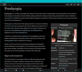 Version 3.2.5-3.2.6 [14-May-24]: With 67,000+ medical articles, WikiMed Offline Medical Wikpedia is the largest and most comprehensive collection of health-related articles available. It includes content on diseases, medication, anatomy, and sanitation. If you do not always have guaranteed Internet access, e.g. in the developing world, while travelling, or on a boat in the middle of nowhere, you can now access one of the foremost and up-to-date medical encyclopaedias, for free. The information in WikiMed has been selected from Wikipedia and MDwiki by WikiProject Medicine. As an encyclopaedic medical dictionary, WikiMed is perfect for practising physicians, as well as medical and other healthcare students. However, Wikipedia is not a doctor and does not give medical advice. The information provided in this app is for the purposes of education and research only. This app works entirely offline. It contains thousands of articles including images, so its archive is large (1.4-1.7 Gigabytes). We recommend that mobile users install it to a microSD card if your device has one (you can change install location in the Storage settings). WikiMed is available also in languages other than English. See the About page in the app for instructions on downloading archives in different languages. This can be done in the app. WikiMed is in active development, so be kind and please report any bugs you experience to the developer using the support link. WikiMed is free and open source: the development site is https://github.com/kiwix/kiwix-js-windows/ (WikiMed branch), so you can also report issues there. We welcome constructive feedback as well as offers of help in improving the app. WikiMed has two sister apps in this store: Wikivoyage by Kiwix (offline travel guide), and Kiwix JS Windows (the generic app which supports most Kiwix archives). Please see Kiwix.org for more information.