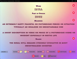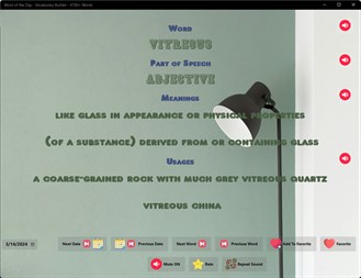 Simple application with all you need to challenge your brain every day! Expand your vocabulary each day with interesting word, clear definition, memorable example and pronunciation for every taste. There is no other better way to improve your native language vocabulary – one small app on your device for your best vocabulary expansion without using thousands of workbooks, thesaurus, articles and dictionaries.