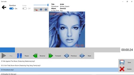 Zen Audio is a music player that can quickly load folders of music files and play them at random. It also works well with audio books. Hold down the 'K' key to see the keyboard shortcuts.