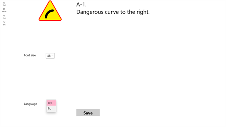 Application for learning Polish road signs. Recommended screen resolution is 1920:1080.