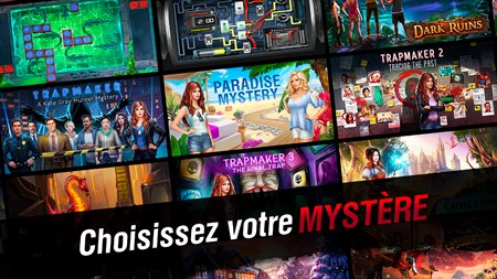 Examinez des indices énigmatiques, élucidez un mystère et résolvez des énigmes dans des aventures aux illustrations magnifiques ! Attrapez un génie criminel dans Trapmaker ou sauvez un royaume fantastique dans Cursed Crown ! JOUEZ AUX MEILLEURS JEUX D'AVENTURE À ÉNIGMES La série de jeux Adventure Escape mélange le style “pointer et cliquer” de jeux comme Monkey Island avec des énigmes ingénieuses de jeux d'évasion comme The Room. Faites la connaissance de personnages inoubliables, utilisez votre inventaire de façon créative et résolvez des énigmes inédites pour résoudre l'affaire. Des dizaines de millions de joueurs ont adoré la série de jeux Adventure Escape. À vous de la découvrir ! ÉLUCIDEZ UN ASSASSINAT MYSTÉRIEUX Dans Trapmaker, l'inspectrice Kate est confrontée à un classique cas d'assassinat mystérieux survenu dans un lieu clos. Elle doit enquêter sur cinq suspects au passé criminel, trouver l'arme du crime et désamorcer les bombes de Trapmaker et découvrir qui est le génie qui se cache derrière ces crimes. Arriverez-vous à résoudre cette affaire et l'assassinat mystérieux ? SAUVEZ VOTRE ROYAUME GR CE À VOTRE MAGIE Dans Cursed Crown, vous partirez avec la princesse Nimue à la découverte d'un monde fantastique. Elle apprend qu'un brouillard empoisonné est sur le point de submerger son royaume. Faites connaissance avec un arbre vivant, découvrez comment lancer des sortilèges et décidez du destin de votre royaume. Nimue pourra-t-elle prendre les décisions difficiles nécessaires pour sauver son peuple ?