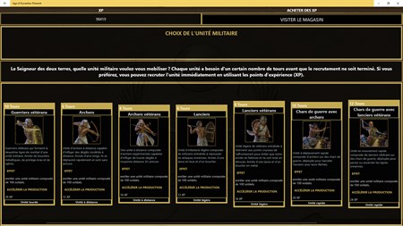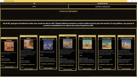 Bâtissez votre empire et conquérez d'autres civilisations en suivant les tactiques et stratégies suggérées par le Grand Vizir, les scribes et vos généraux. Dans ce jeu de stratégie, vous pouvez remporter une victoire militaire avec vos armées ou une victoire culturelle avec vos villes en fonction des tactiques que vous choisissez d'appliquer. Serez-vous capable de satisfaire les demandes de vos sujets, de conserver la faveur des dieux et de soumettre vos ennemis avec vos chars de guerre ? Devenez Pharaon et découvrez-le aujourd'hui dans ce RPG historique passionnant !