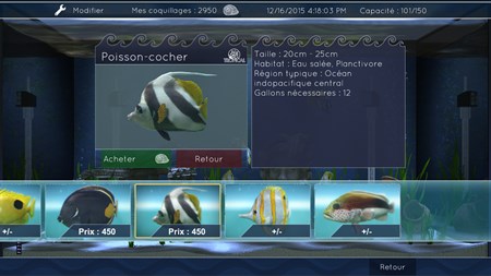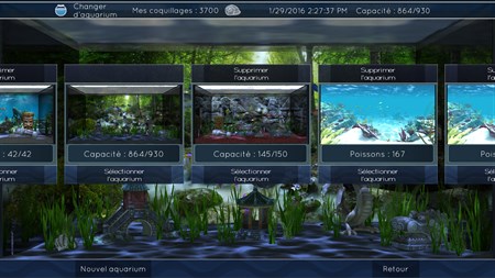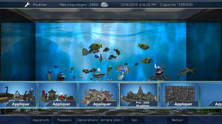 Choisissez un aquarium, puis personnalisez le sol, l’arrière-plan, les décorations... sans oublier les poissons, bien entendu !