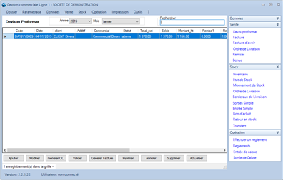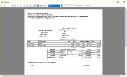 Note: Cet application peut nécessiter un logiciel non intégré, le .NET Desktop Runtime. ASENGO COMMERCE est un logiciel de gestion commerciale qui répond aux exigences de gestion commerciale dans les entreprises de toutes tailles ; des micro-entreprises aux grandes entreprises de divers secteurs d’activités. Les grandes fonctionnalités de l’application sont la facturation, la gestion des stocks et inventaires, les encaissements et les états statistiques. Il offre beaucoup d’options de paramétrage selon la convenance de l’utilisateur et la stratégie de gestion de l’entreprise ; permet de mesurer la force de vente de votre équipe commerciale pour une période et calculer le montant des commissions qu’ils doivent percevoir s’ils ont attend leur objectif de vente fixés.