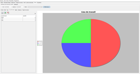 Possibilités supplémentaires Le programme donne la possibilité de visualiser des statistiques détaillées selon les critères choisis. Tous les tableaux peuvent être paramétrés par l'utilisateur. Toutes les données peuvent être imprimées, enregistrées en PDF ou exportées au format CSV.