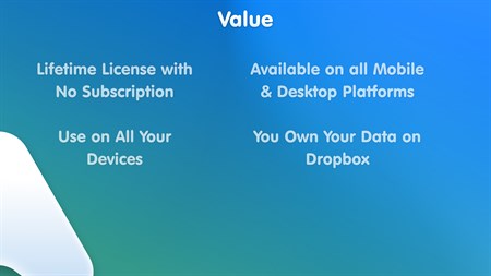No subscription required. A single purchase gets you a lifetime license on all devices and platforms.