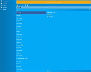 Application features: - Favorites. - History. - Various settings like color themes. - Text to speech.