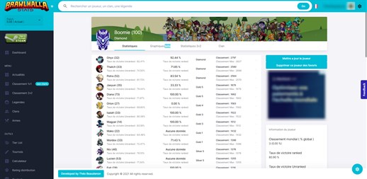 Stats Brawlhalla fournit des statistiques sur les légendes et les joueurs de Brawlhalla, un classement et des analyses comme le taux de victoire, les niveaux, l'elo et bien plus encore !