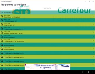 L'application Carrefour Pathologie 2017 vous permets de retrouver l'intégralité du programme du congrès, ses intervenants et ses partenaires.