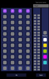 It's a popular game from '70s. Your job is to guess the colors under question marks. The black result pawn means that one of pawns is in the right color and it's in the right place. The white one means that it's in the right color but not on it's place. Good luck!