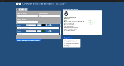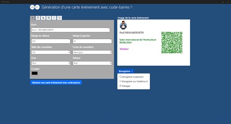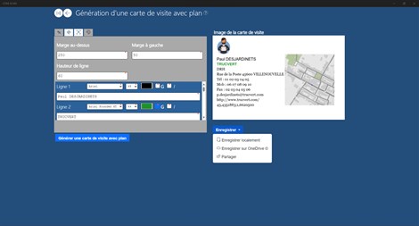 COM-SCAN génère des cartes de visites avec code-barres, des cartes événements avec code-barres et des cartes de visites avec plans.