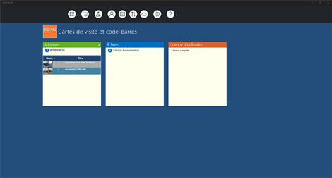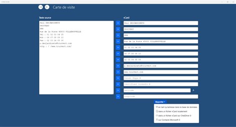 Cette application est principalement destinée à lire les coordonnées de cartes de visites, qui peuvent ensuite être exportées sous forme de fichiers vCard pouvant être importés dans différentes applications comme « MS Outlook © » ou COM-CRM.