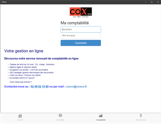 Notre application vous permet d'accéder à votre comptabilité en ligne et de nous géolocaliser.