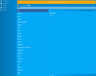 Fonctionnalités de l’application : — Liste des favoris. — Historique. — Divers réglages tels que ceux des thèmes de couleurs, etc. — Texte pour parler.