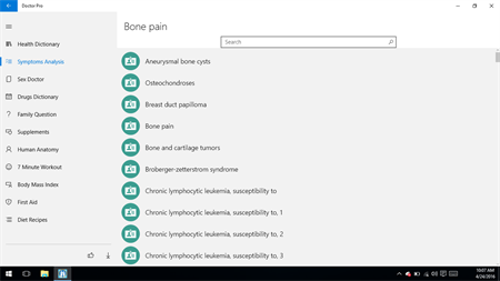 Protecting Yourself and Your Family with Doctor Pro Doctor Pro is a application where you can learn all about the Health & Medicine. Doctor Pro Features: 1. Health Dictionary: Medical Dictionary is intended for use by healthcare consumers, students, and professionals as well as anyone who wants to monitor the health - Blood and immune system - Children's illnesses - Hormones - Skin and hair - Psychiatric and neurological - ... 2. Symptoms Analysis: Medical symptoms to disease diagnosis offline by using this app. Receive a quick reliable medical diagnosis with more health information. 3. Body mass index: Body Mass Index (BMI) is a number calculated from a person's weight and height. BMI provides a reliable indicator of body fatness for most people and is used to screen for weight categories that may lead to health problems. 4. Sex Doctor: you can learn all about sexual health. - Better Sex - First Time Sex - HIV and AIDS - Premature - ... 5. Human Anatomy: learn the basics of the human body and how this beautiful machine and all the systmes inside works. 6. Family Medicine: offers 100 questions and answers with detailed explanations, including references about family medicine. 7. First Aid is designed to help you follow the right procedures in a stressful situation or support other people by giving them instructions. 8. 100+ diet recipes : We have compiled hundreds of great recipes for you to enjoy - from healthy snacks to nutrition-filled family meals. You can find a great recipe for any occasion. 9. Drugs Dictionary: Most complete medication app with over 4,000 FDA-approved medications. 10. Supplements: Nutrients, Supplements & Vitamins are essential nutrients because they perform hundreds of roles in the body. This is dictionary contain advice and information on vitamins, minerals and trace elements essential for health. 11. 7 Minute Workout: 12 exercises are performed for 30 seconds, with 10 seconds of transition time between bouts. This workout has been featured in the New York Times (http://well.blogs.nytimes.com/2013/05/09/the-scientific-7-minute-workout/) and Mercola Fitness (http://fitness.mercola.com/sites/fitness/archive/2013/05/24/7-minute-workout.aspx). The original research article was published at http://journals.lww.com/acsm-healthfitness/Fulltext/2013/05000/HIGH_INTENSITY_CIRCUIT_TRAINING_USING_BODY_WEIGHT_.5.aspx