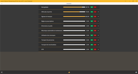examen théorique suisse permis de conduire camion, bus, Taxi et OACP certificat • Préparation optimale aux questions d’examen des catégories C, CE, C1, D, DE, D1,TPP • Plus de 100 questions d’examen illustrées et proches des questions officielles • Préparation à l’OACP certificat incluse • Evaluation d’examen automatique • Questions avec commentaires d’experts • Forum d’experts pour des questions aux moniteurs d’auto-école • Filtrage des questions d’après les catégories et les spécialités L’app e.driver Professional Light comprend 100 questions d'examen gratuites et en option les encore 700+ questions d’examen complémentaires (membres du club e.driver Professinal). L’app est disponible en allemand et en français. Le programme te conduit à travers toutes les questions de l’examen de façon interactive et exploite les réponses pour toi. Toutes les questions sont commentées par des experts et les réponses sont justifiées! – Un complément idéal pour l’auto-école. Si l’app te plait, nous serions content de recevoir une évaluation positive de toi. Aussi nous acceptons volontiers des suggestions d’amélioration sous info@e-university.ch. Tu trouveras d’autres informations sous www.e-university.ch.