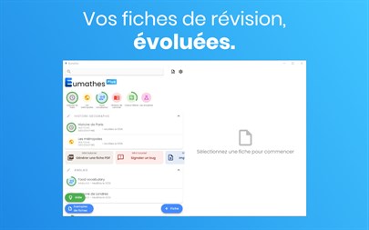 De nombreuses autres fonctionnalités vous attendent dans Eumathes : rappels de révision, import de fiches, export et partage, génération de fiches PDF, etc. N'attendez plus, installez-la !