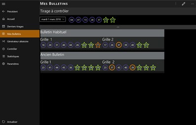 Avec cette application, vous obtenez automatiquement les résultats de l'Euro Millions ainsi que les bonus tels que my million, super star ou encore joker+, etc. Elle compare automatiquement les résultats avec vos grilles enregistrées et affiche vos gains potentiels.