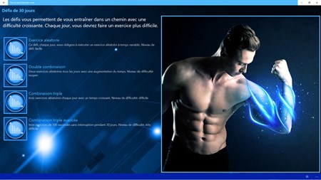 Des défis de 30 jours. En plus des entraînements de bras prédéfinis, vous pourrez également prendre part à l'un des défis disponibles qui intensifiera progressivement votre entraînement de bras et produira des résultats fantastiques en un rien de temps.