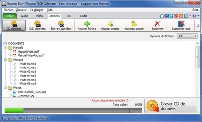 Express Burn est une suite de gravure ultra rapide. Avec Express Burn, vous pouvez créer une variété de CD, incluant les disques Audio, DVD, de données en encore plus. L’ajout des fichiers ne pourrait pas être plus facile. Vous pouvez choisir des fichiers spécifiques, un dossier entier, un CD ou simplement faire glisser les fichiers de votre choix dans le programme. Les disques audio traditionnels supportent les formats WAV, MP3, WMA, OGG, FLAC et plusieurs autres formats pour stocker vos chansons favorites. Pendant la gravure, vous pouvez choisir de normaliser le volume, personnaliser le temps de pause entre les pistes tout en maintenant une qualité audio parfaite. La gravure de DVD vous permet de graver vos vidéos maison pour les partager avec la famille et les amis. Attribuez des chapitres à vos films et des menus pour en faciliter la navigation. Pour sauvegarder vos données, gravez vos informations sur un disque de données.