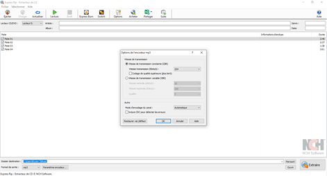 Les fonctionnalités incluent: • Extraire l'audio d'un CD vers WAV ou MP3 • Téléchargement de petite taille inférieur à 500 k qui s'installe en quelques secondes • Grâce à l'extraction numérique directe, la qualité audio est conservée lors de la conversion de CD audio en MP3 ou WAV • Mise à jour automatique de la liste des pistes lorsqu'un CD est éjecté ou inséré.