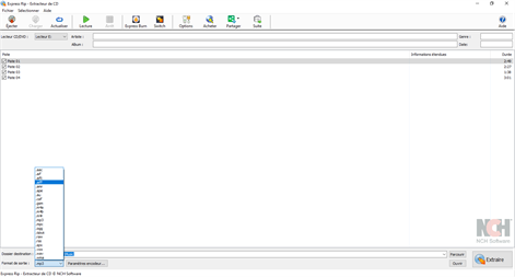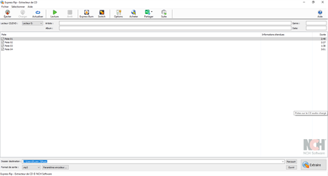 Express Rip édition Power par NCH Software est un programme d'extraction de CD pour Windows qui permet d'extraire des pistes audio numérique directement à partir d'un CD audio en MP3 ou WAV avec une qualité d'extraction numérique parfaite. Express Rip est le rippeur le plus rapide.
