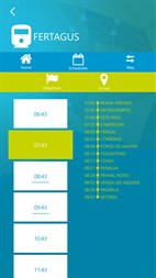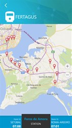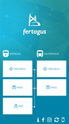 Official mobile application from Fertagus showing the services provided by the company, namely the timetables of both the train and the buses of Sulfertagus.