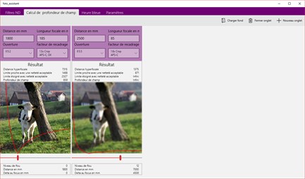 Pas d'idée du votre profondeur de champ? Voyez donc 1. Spécifier la distance en mm 2. Spécifier la longueur focale en mm 3. Sélection de l’ouverture 4. Choisir facteur de recadrage 5. Résultats 6. Simulation de flou. Observez les changement du flou en fonction de la distance.