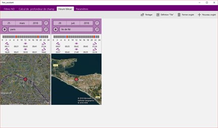 L’heure bleue : le lève-tôt attrape le ver. Mais quand exactement ? 1 Choisir un lieu de votre choix 2. Définir une date, pour calculer le lever et le coucher du soleil 3. Centrage du lieu séléctioné sur l’écran 4. Recherche d’un site basé sur le champ no 1 5. Démarrer le calcul 6. Résultats ~ heure bleu, lever de soleil, heure d’orée ~ heure d’orée, coucher de soleil, heure bleu