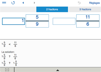 • COMPARAISON DES FRACTIONS Vous pouvez comparer deux ou trois fractions. Pour comparer trois fractions, vous devez sélectionner l'orientation paysage.